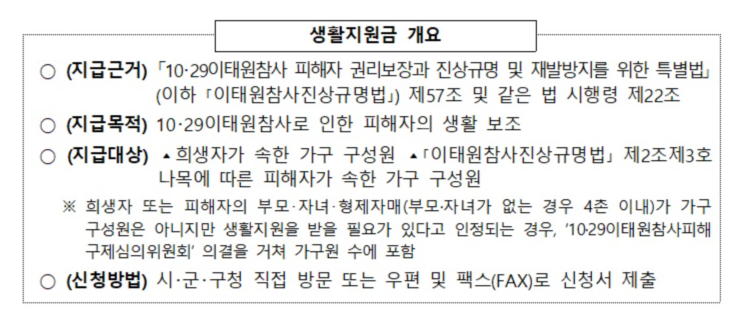 이태원 참사 피해자 생활지원금 신청안내 및 지원 내용 총정리